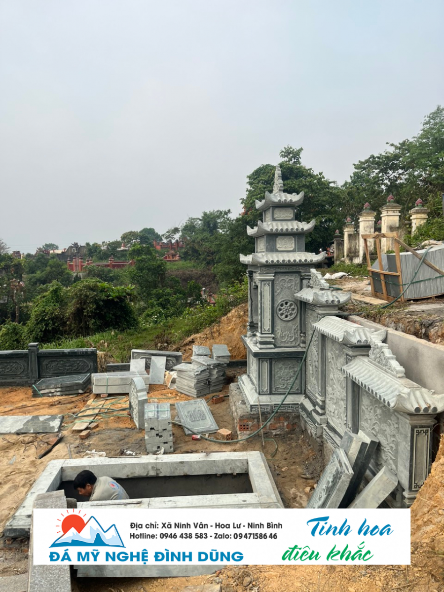 Mộ đá xanh rêu 2 mái 12